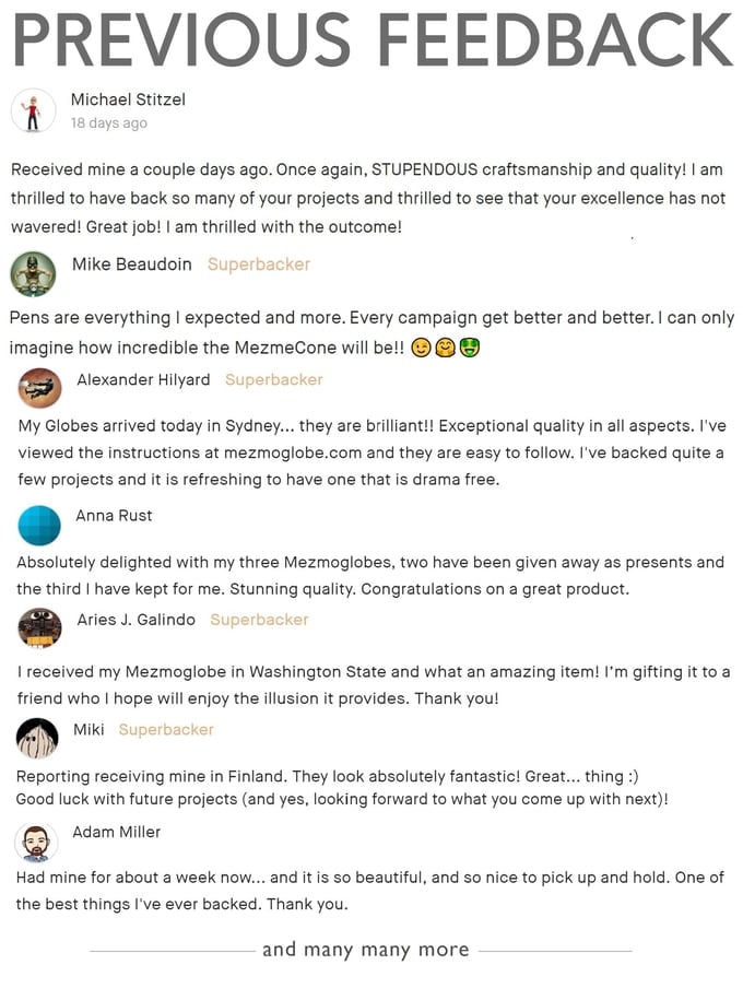 Aber verlassen Sie sich nicht nur auf unser Wort – sehen Sie, was unsere früheren Unterstützer über unsere Produkte sagen