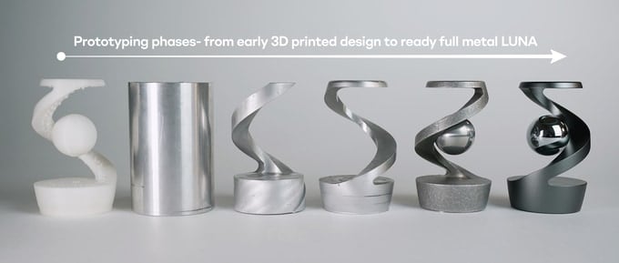 Luna ist zweifellos unser bisher komplexestes Schreibtischspielzeug. Um ein so einzigartiges visuelles Erscheinungsbild zu erzielen, waren Monate des Prototypings und Experimentierens mit verschiedenen Arten von Formen und Materialien erforderlich. Der Herstellungsprozess erfordert Hingabe und echte Präzision, aber es lohnt sich. Luna ist aus hochwertigsten Metallen CNC-gefräst und besteht aus 8 verschiedenen Teilen, die präzise zusammengefügt sind.