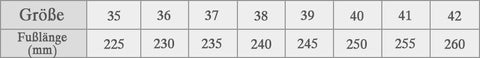 - Bitte wählen Sie eine passende Größe abhängig von Ihrer Fußlänge;
