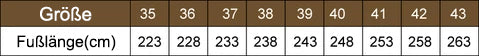 - Bitte wählen Sie den Artikel vor der Bestellung gemäß unserer Größentabelle aus. Wenn Ihr Fuß dick oder breit ist, empfehlen wir Ihnen, eine größere Größe zu wählen.